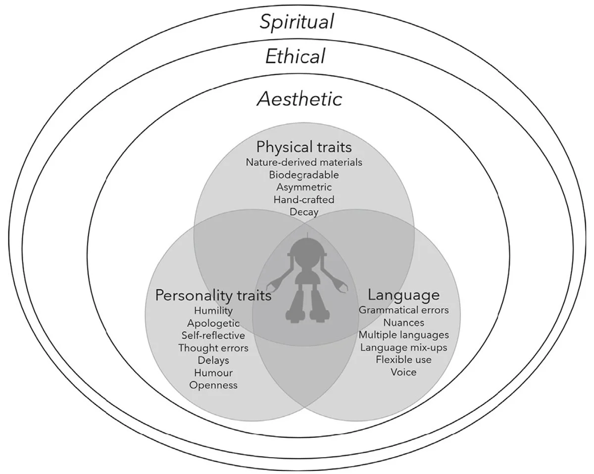 Rousi, R., & Haimes, P. (2024). Social robot design and the aesthetics of imperfection. In R. Rousi, C. von Koskull, & V. Roto (Eds.), Humane autonomous technology: Re-thinking experience with and in intelligent systems (pp. 199-232). Springer. https://doi.org/10.1007/978-3-031-66528-8_9